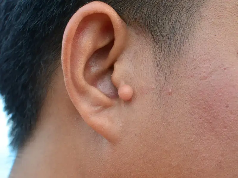 Caused by sudden trauma or accidental pulling of earrings.