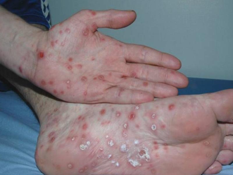 Syphilis progresses in stages. It often starts with a painless sore and can lead to sexually transmitted diseases skin rashes on the palms and soles. Without vd treatment, it can damage the heart and brain.